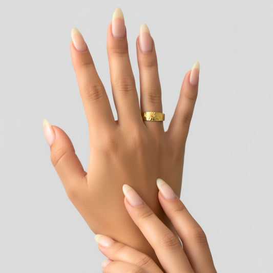 Tarnish-free, waterproof, and hypoallergenic: this ring will shine through every season. A must-have for those who want a hint of meaning in a sleek silhouette.