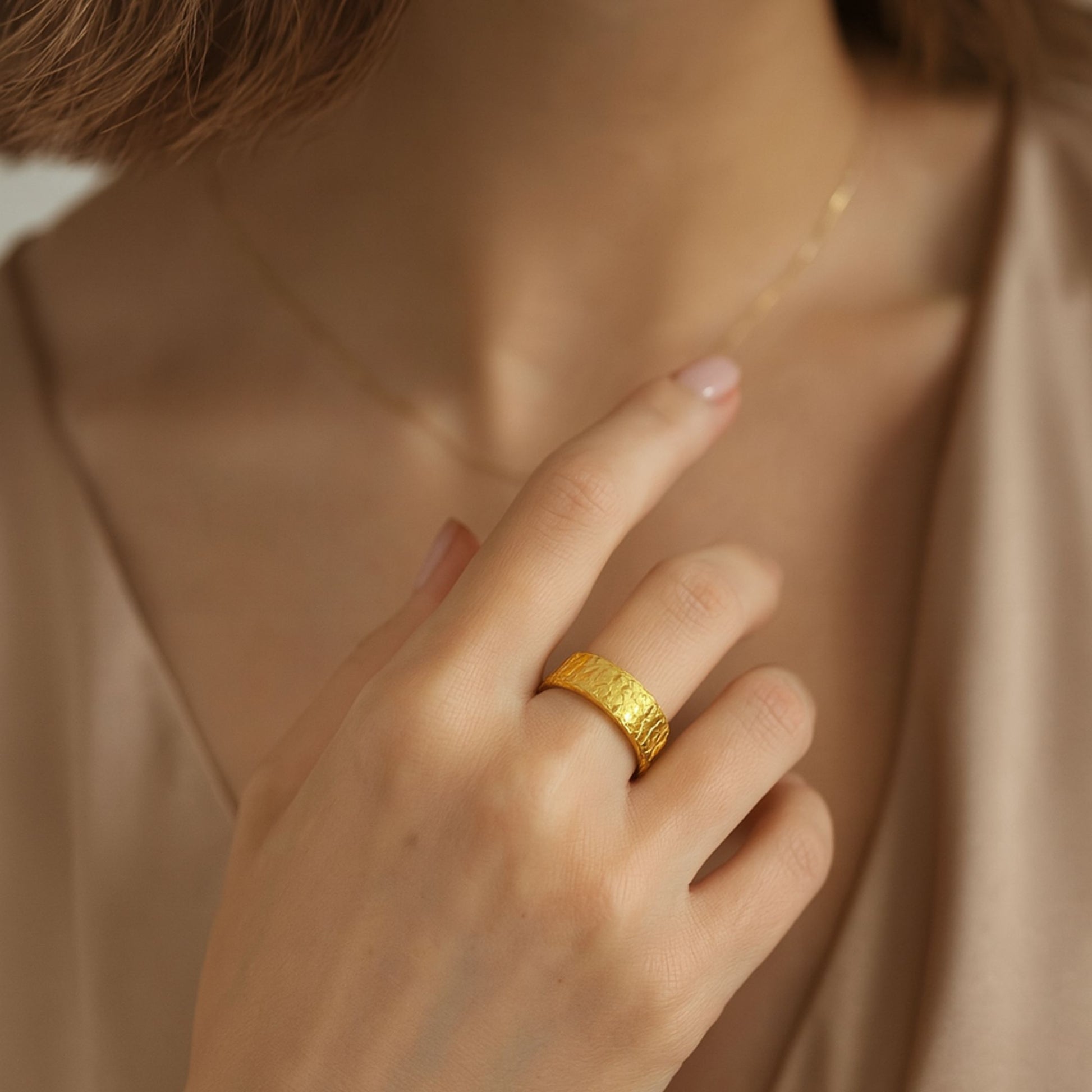 "I’m in love with my Love Band Ring. The engraving is subtle and elegant, and I can wear it every day without worrying about it turning green or tarnishing."